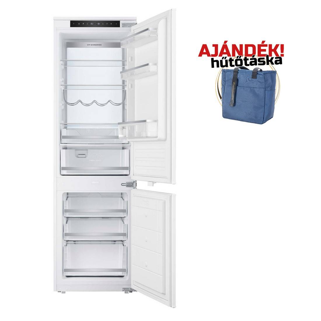 NODOR - Beépíthető hűtőszekrény kombinált NorFrost HAIL-177 TNF BI SL + Ajándék Hűtőtáska