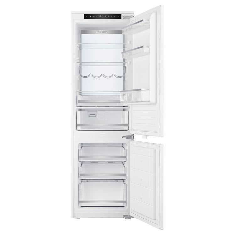 kombinált, alulfagyasztós beépíthető hűtőszekrény NO-FROST technológiával, LED világítás, 178 cm magas, 237 literes, 170 literes normál hűtőrész, 67 literes fagyasztó, elektronikus hőmérséklet szabályozás kijelzéssel, 4 db biztonsági üvegpolc, 3 db polc az ajtón, 1 db zöldségtartó fiók páratartalom szabályzással, 1 db 0 °C-os fiók, 1 db palacktartó fém polc, 3 db fagyasztó fiók, fogyasztás: 294 kWh/év, fagyasztó kapacitás: 3,2 Kg/24 óra, zajszint: 41 dB(A), megfordítható ajtónyitás
