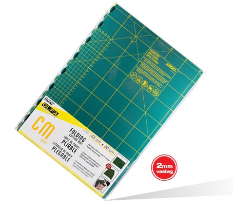 OLFA FCM-A2 - Összehajtható vágóalátét - 43 x 60 cm-es, új speciális felületű és anyagú, az összehajtásnál is zökkenőmentes vágást biztosító vágólap. A vágóalátét 2 mm vastagságú, könnyen olvasható számokkal, metrikus rácsozással és a leggyakrabban használt szögjelölésekkel van ellátva. A vágóalátét hátoldalán egy csúszásmentes szivacsréteg található, ami megnöveli a vágólap stabilitását. Az alátét félbehajtva praktikus az utazásnál vagy tárolásnál. Egyaránt használható körpengés foltvarró – patchwork -, 9 mm-es standard és művészkésekkel. DEHP-mentes!
