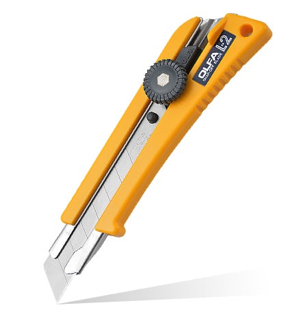 OLFA L-2 - 18mm-es standard kés / sniccer. A stabil fogás érdekében markolatában gumibetéttel ellátott csavaros rögzítésű vágókés.