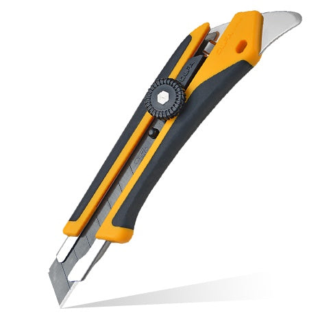 OLFA L-5 - 18mm-es standard kés / sniccer. Az X Design sorozat nagy igénybevételre tervezett csavaros pengerögzítésű tagja. Üvegszállal erősített markolata végén erős fém fül található.