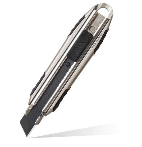 OLFA MXP-AL - 18mm-es standard kés / sniccer. Minden elképzelhető luxus egy késben. Kivételesen erős öntött alumínium test. Az X design markolat, egy csúszásmentes elasztomer betét és egy erős polipropilén műanyag váz kombinációja. A markolat összeállításánál nem használtak ragasztóanyagot. A törés biztos rozsdamentes és krómozott pengecsatorna, nagy hajlítószilárdságú és kopásálló. A gyors és stabil pengerögzítés érdekében a legfejlettebb automatikus záró pengecsúszkával felszerelve. A markolat végén található nagyméretű lyuk megkönnyíti a kés szerszámfalon való tárolását.