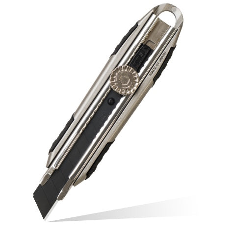 OLFA MXP-L - 18mm-es standard kés / sniccer. Minden elképzelhető luxus egy késben. Kivételesen erős öntött alumínium test. Az X design markolat, egy csúszásmentes elasztomer betét és egy erős polipropilén műanyag váz kombinációja. A markolat összeállításánál nem használtak ragasztóanyagot. A törés biztos rozsdamentes és krómozott pengecsatorna, nagy hajlítószilárdságú és kopásálló. A csavaros pengerögzítő könnyedén működik. Szilárdsága érdekében, egy darabból készült. A markolat végén található nagyméretű lyuk megkönnyíti a kés szerszámfalon való tárolását.