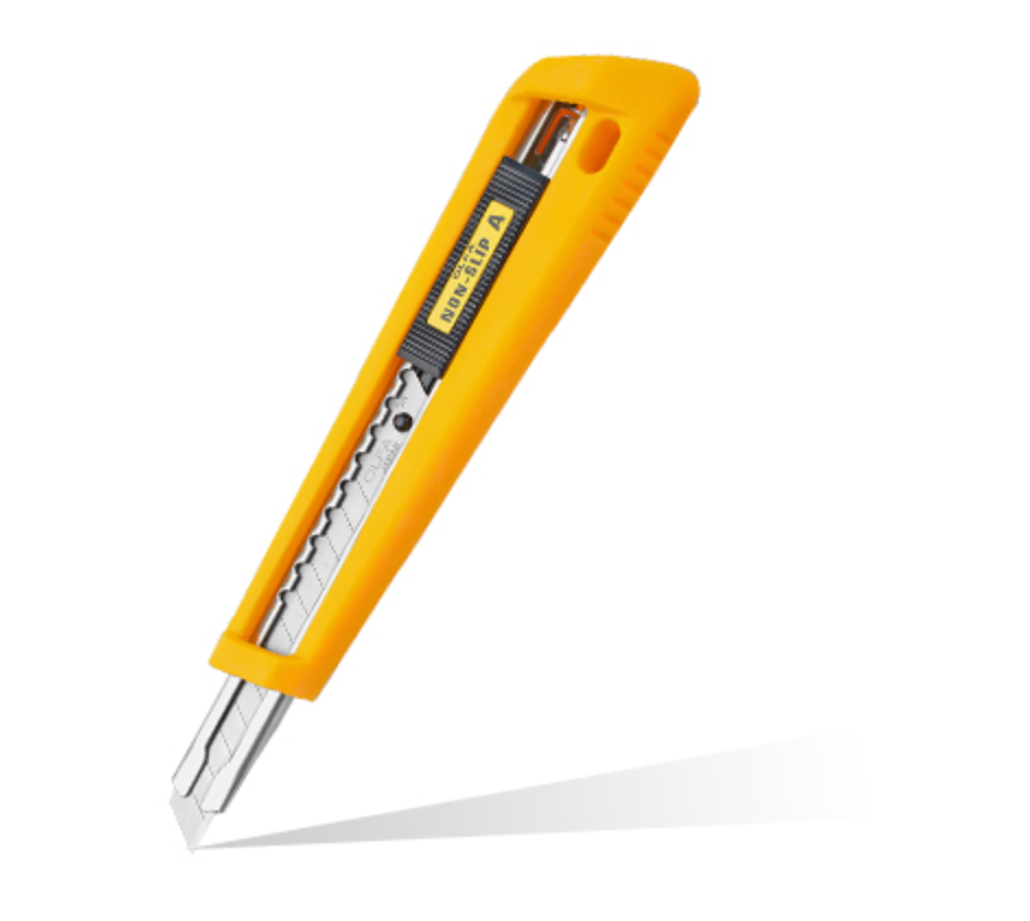 OLFA NA-1 - 9mm-es standard kés / sniccer. Automata pengerögzítővel rendelkező acélházas kés, kényelmes markolattal.