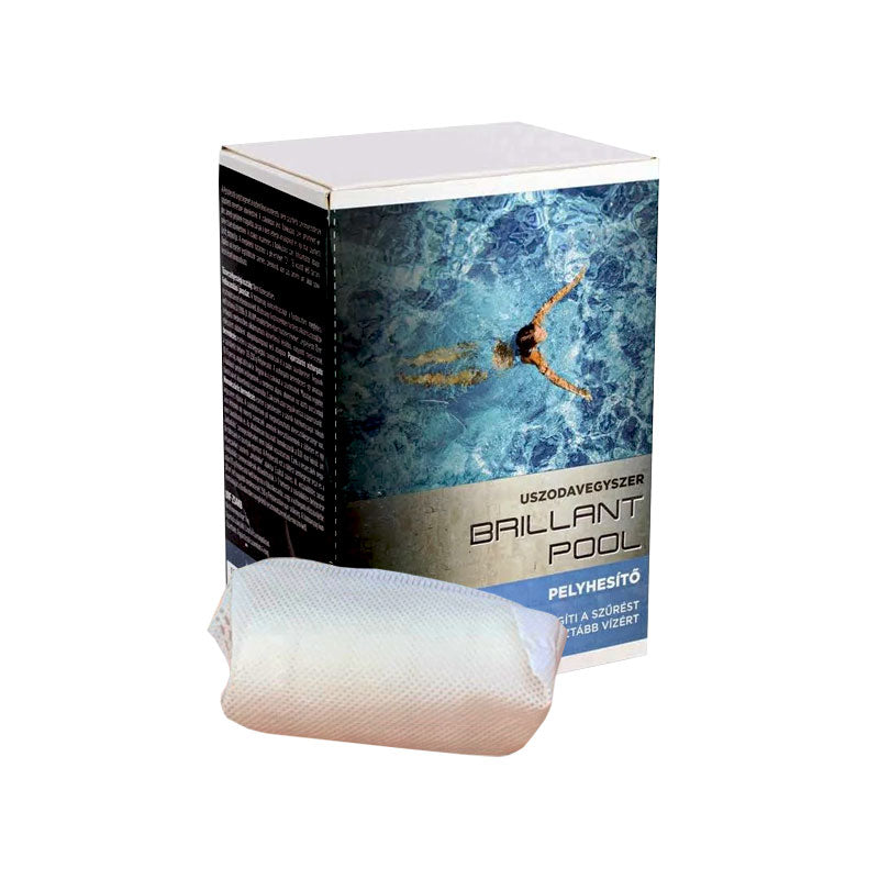 Pelyhesítőszer, textilzsákba helyezett tablettás kiszerelésben. A pelyhesítőszer biztosítja az olyan lebegő szennyeződések kiszűrését, amelyek egyébként nem kerülnek a szűrőforgató berendezés által kiszűrésre.