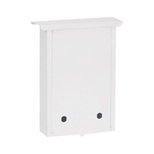 Kerítésre szerelhető, hátsó bedobós, fehér színű, horganyzott lemezből készült postaláda.