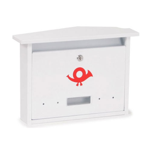 Kétoldali bedobási lehetőség, mind kerítésre, mind falra szerelhető. Névtartóval ellátott, fehér színű, horganyzott lemezből készülő tartós kivitel.