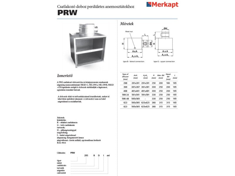 ALNOR ANEMOSZTÁT DOBOZ (498), OLDAL BEKÖTÉS, 200