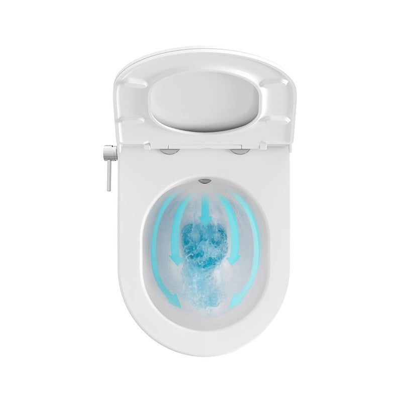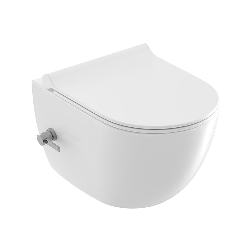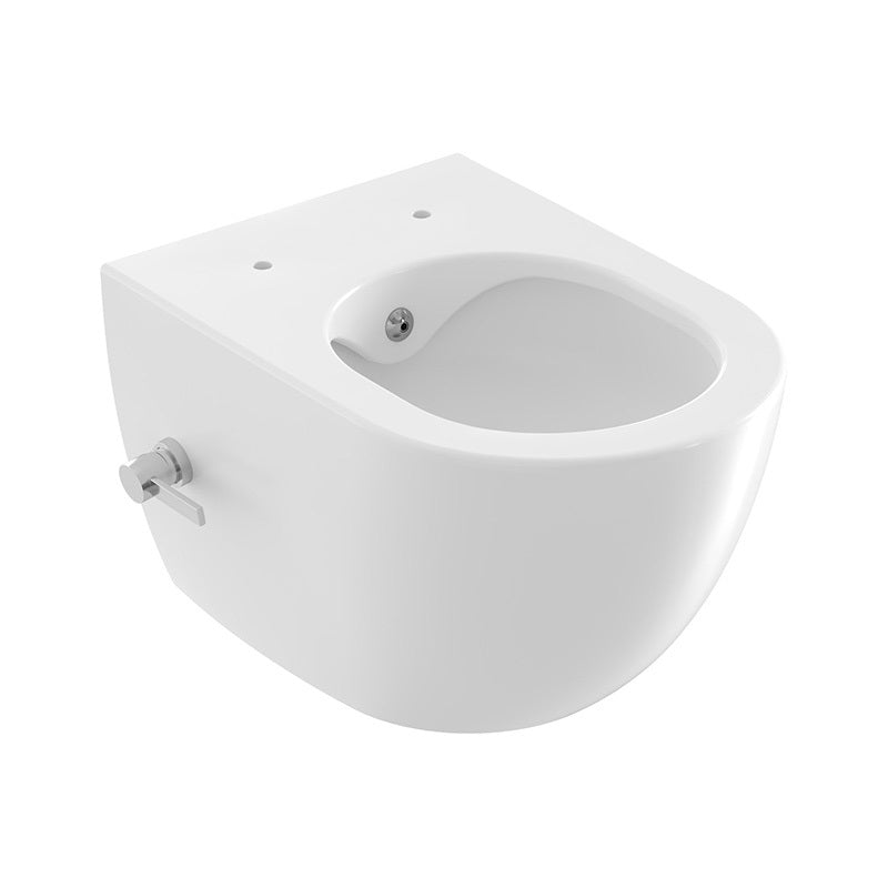 A WC-kagylóba beépített bidé fúvóka optimális vízsugár szöge állítható. A víz áramlási intenzitását és hőmérsékletét a WC jobb oldalán található keverőkar szabályozza. Nincs szükség elektromos csatlakozásra.