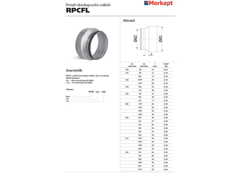 Préselt RÖVID szűkítő idom, gumitömítéssel, egyik végén belső csatlakozással