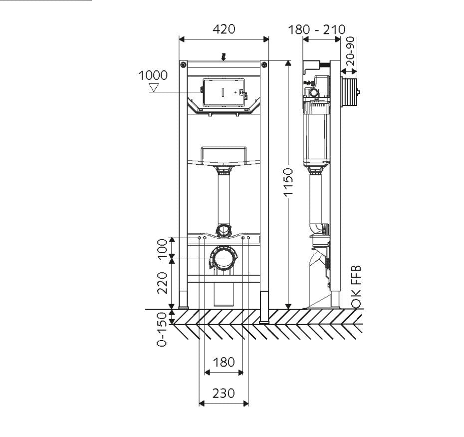 - A fali WC-khez 180 vagy 230 mm-es rögzítési mérettel rendelkezik