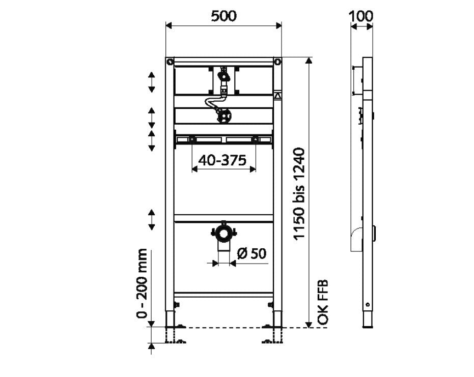 Szerelőmodul beépítési magassága 115 cm COMPACT II falba építhető vizelde-öblítőszeleppel.