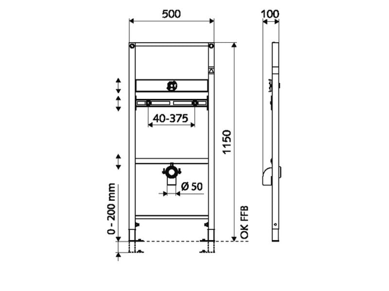 - Keresztrúd piszoár rögzítéséhez 40-375 mm, állítható magasságú