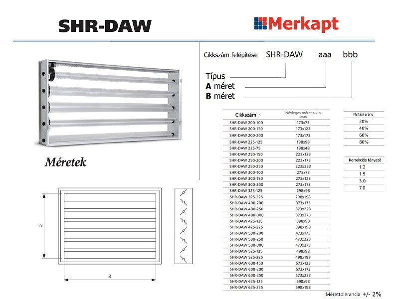Az SHR-DAW alumínium ellenirányú csappantyú alumínium lapátokkal van felszerelve, és SHR ráccsal együtt szerelhető fel. Ezzel szabályozhatja a légáramlást anélkül, hogy a teljes diffúzort szét kellene szerelni. A fojtószelep beállításához csavarhúzó szükséges.