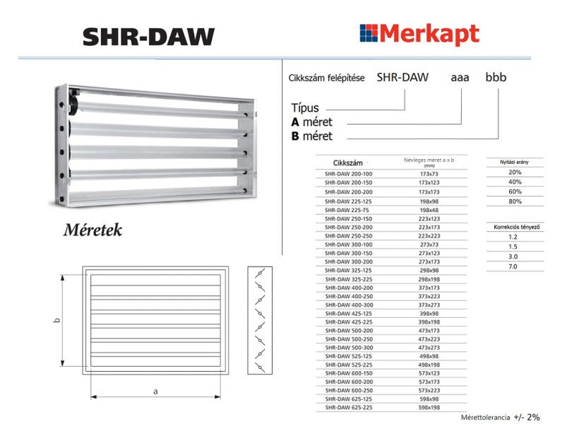 Az SHR-DAW alumínium ellenirányú csappantyú alumínium lapátokkal van felszerelve, és SHR ráccsal együtt szerelhető fel. Ezzel szabályozhatja a légáramlást anélkül, hogy a teljes diffúzort szét kellene szerelni. A fojtószelep beállításához csavarhúzó szükséges.