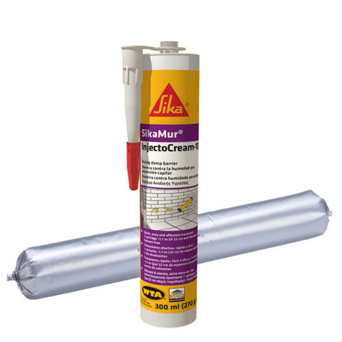 A SikaMur-InjectoCream-100 egy újgenerációs talajnedvesség elleni szigetelő vízzáró krém, 600 ml-es monoporciós kiszerelésben.