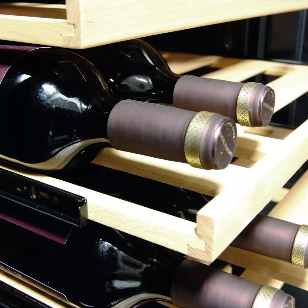 A SIRIUS SW-1 borhűtő akár 105 palack tárolására is alkalmas, így méltó helyet biztosít a borok iránti szenvedélynek és a gondosan összeválogatott gyűjteménynek. A 15 prémium bükkfa polc nemcsak elegáns, hanem a palackok stabil tárolását is garantálja. A polcok teleszkópos síneken mozognak, így könnyedén kihúzhatók, ami maximális kényelmet biztosít: a palackokhoz mindig egyszerűen és biztonságosan férhet hozzá, anélkül, hogy megbolygatná a többi bort. Ez a megoldás különösen praktikus, ha nagyobb gyűjteményről van szó, hiszen a tárolás mellett a használat is élménnyé válik.