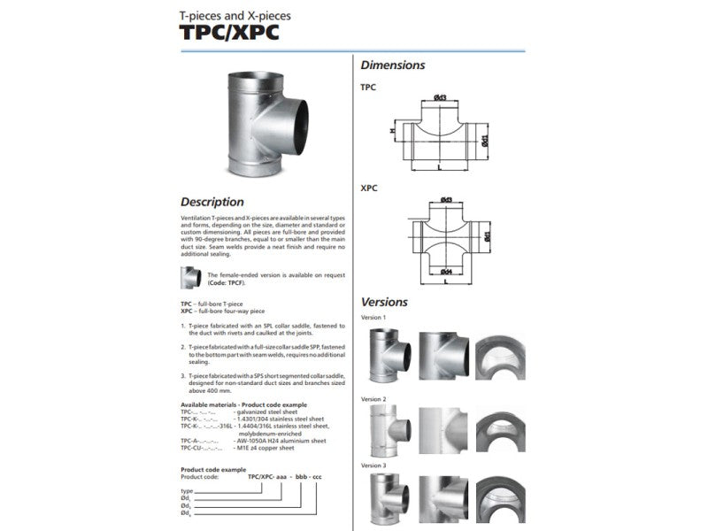 A TPCL 90°-os T-idom (szimmetrikus egál T) íves kialakítással, légcsatorna rendszerekhez. A lemezek csatlakozásainak rögzítése forrasztással, vagy szegecseléssel történik.