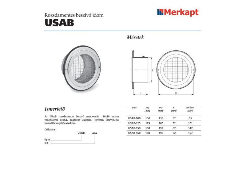 ALNOR ROZSDAMENTES ACÉL LÉGBEVEZETŐ ÉS KIFÚVÓ IDOM, ROVARHÁLÓVAL, D200