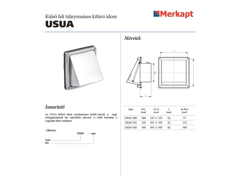 Rozsdamentes lemezből készült. Zajterhelése alacsony, a fedél bizosítja a cspadék elleni védelmet.