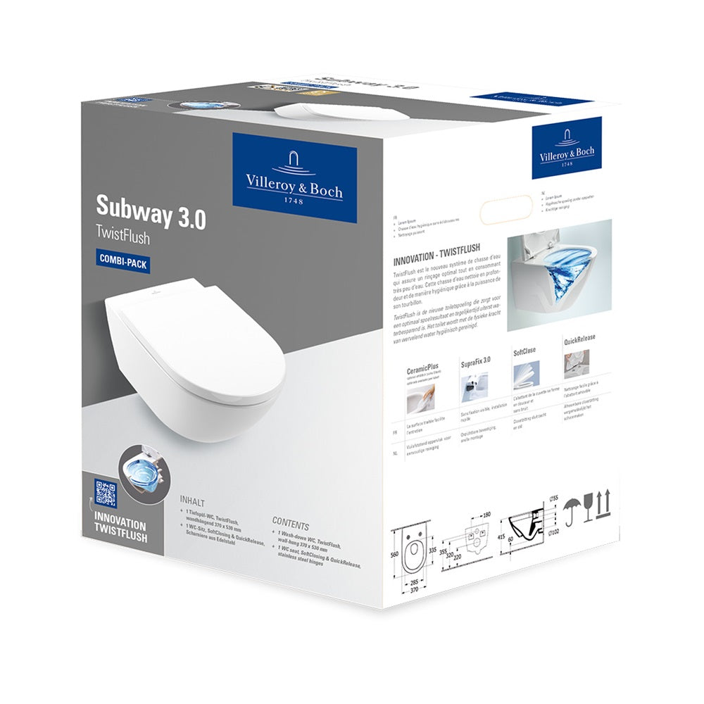 Villeroy & Boch Subway 3.0 kombipack perem nélküli fali wc, ülőkével twistflush