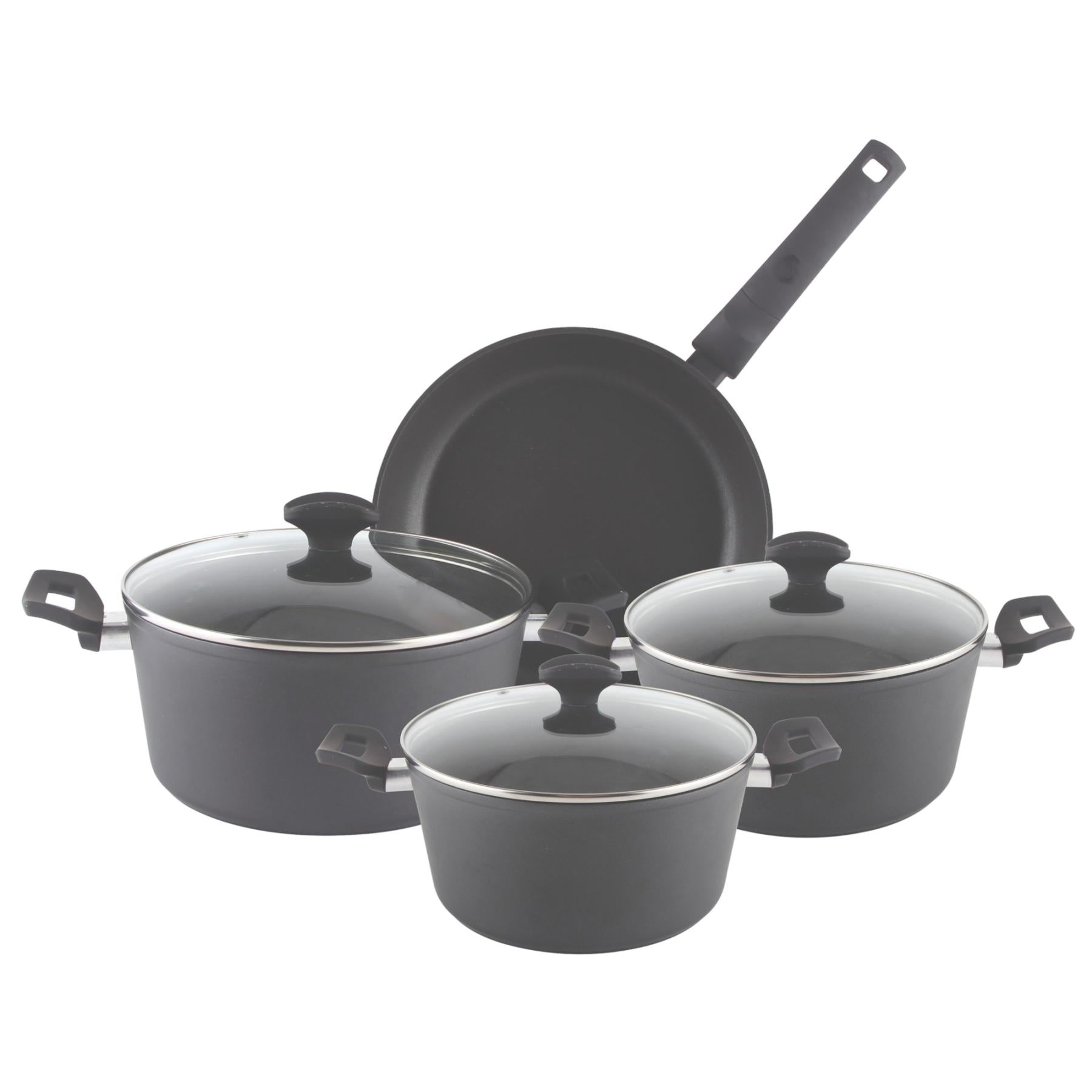 Zilan ZLN3277 edénykészlet, 7 db-os, tapadásmentes belső bevonat, 3 edény és 1 serpenyő, fekete színű